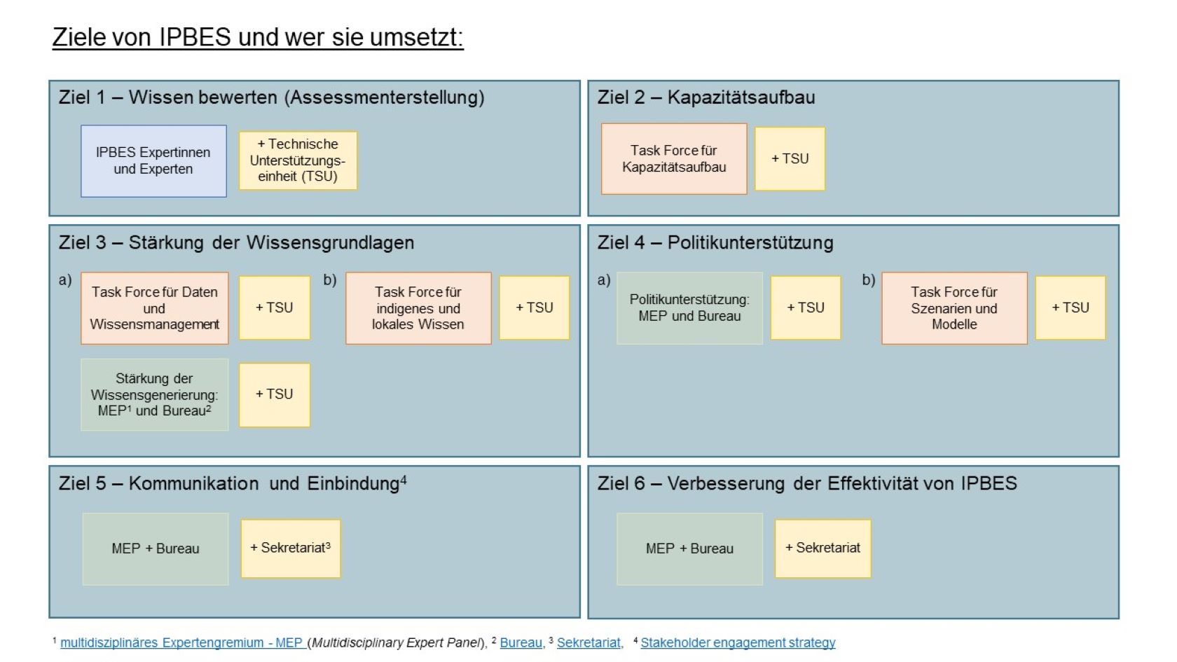 Die Arbeitsprogramme und die institutionellen Arrangements für die IPBES-Ziele Kapazitätsaufbau, Stärkung der Wissensgrundlagen und Politikunterstützung: